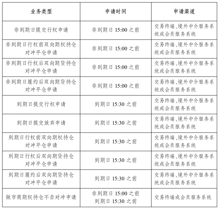表1 行权与履约时间及渠道